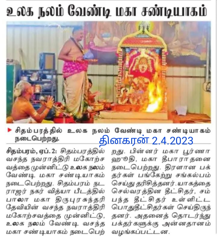 Our Sri Sri Sri Bala Guruji Thangasabapathy Deekshithar Swamigal performed Maha Chandi Yagam for Prosperity of the World.Following Guruji We also Performed SARVA MANGALA MAHA CHANDI YAGAM.