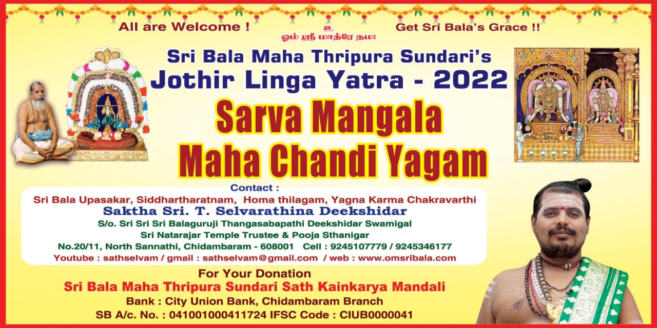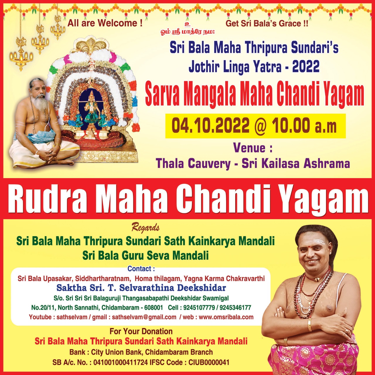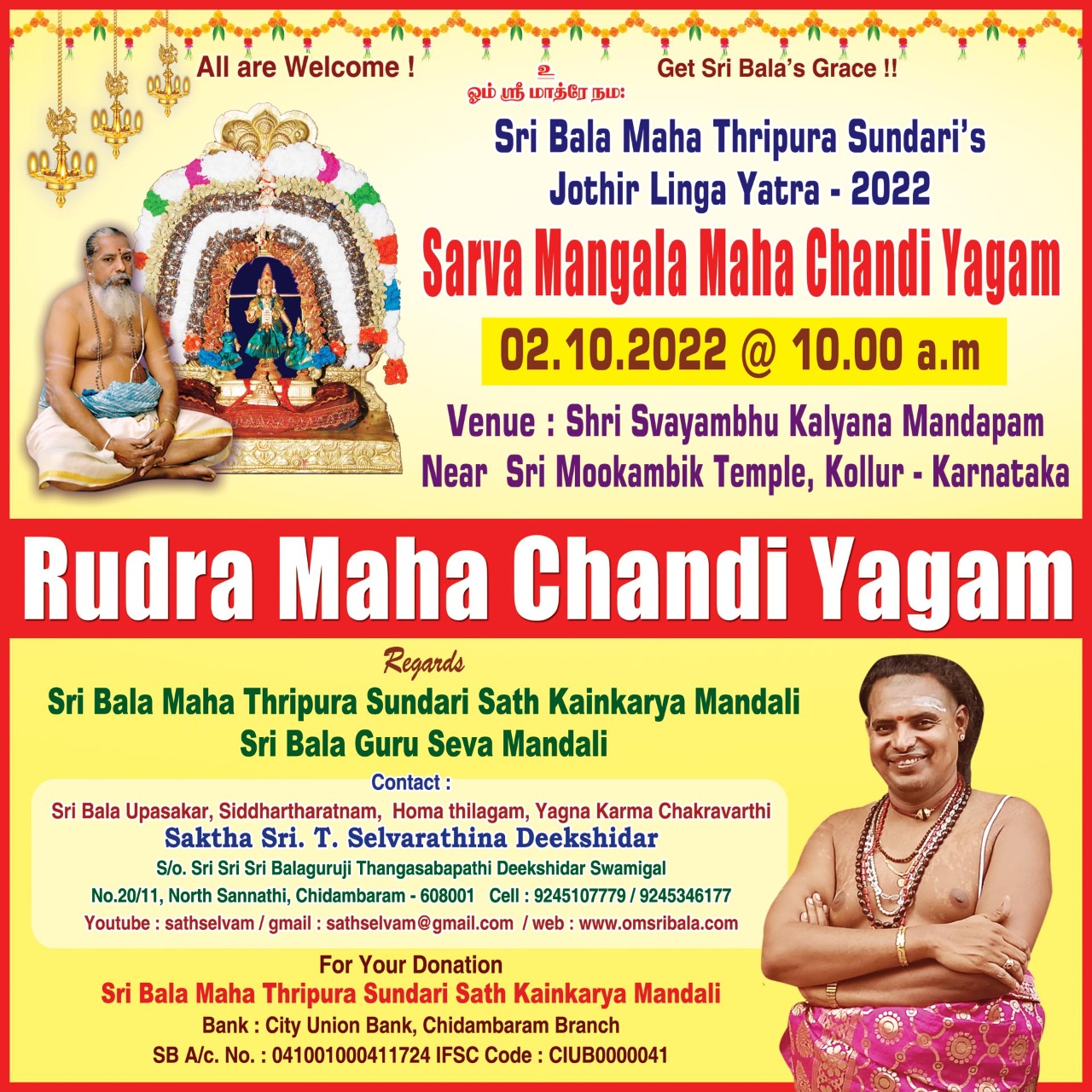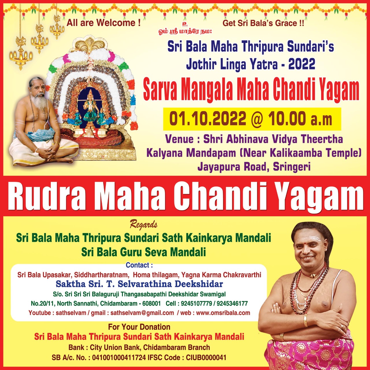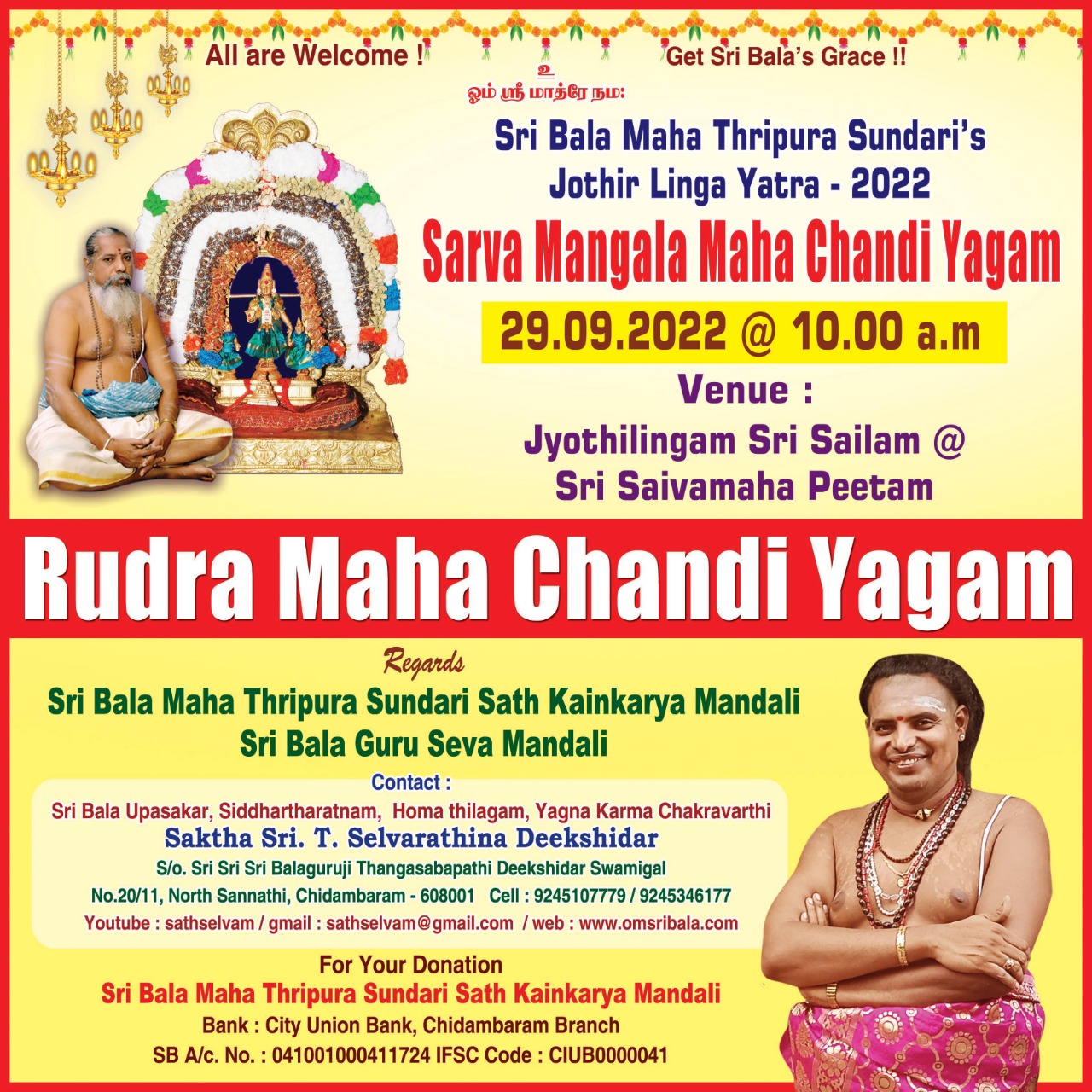 Our Sri Sri Sri Bala Guruji Thangasabapathy Deekshithar Swamigal performed Maha Chandi Yagam for Prosperity of the World.Following Guruji We also Performed SARVA MANGALA MAHA CHANDI YAGAM.