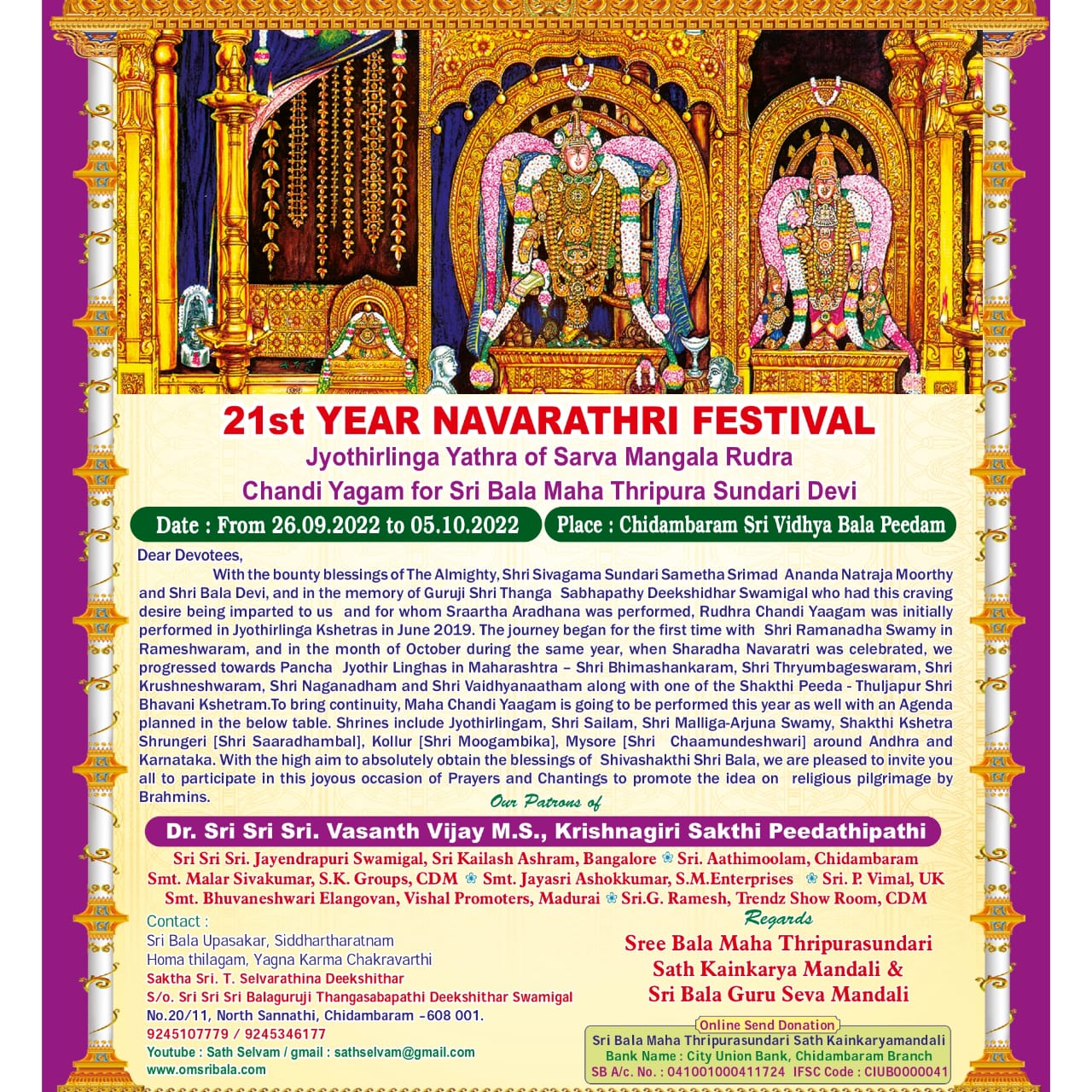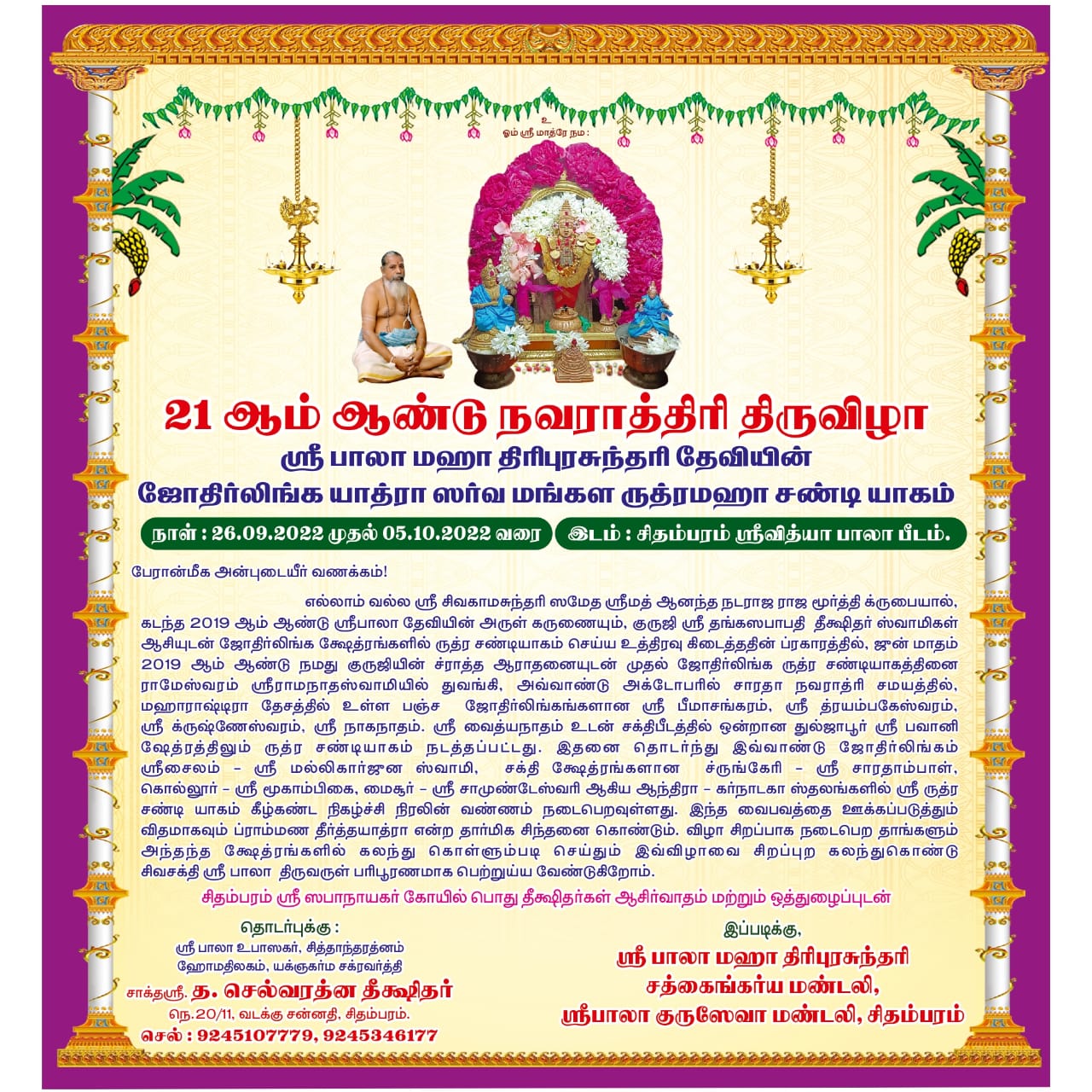 சிதம்பரம் ஸ்ரீ வித்யா பாலா பீடம் நவராத்திரி - 2022
